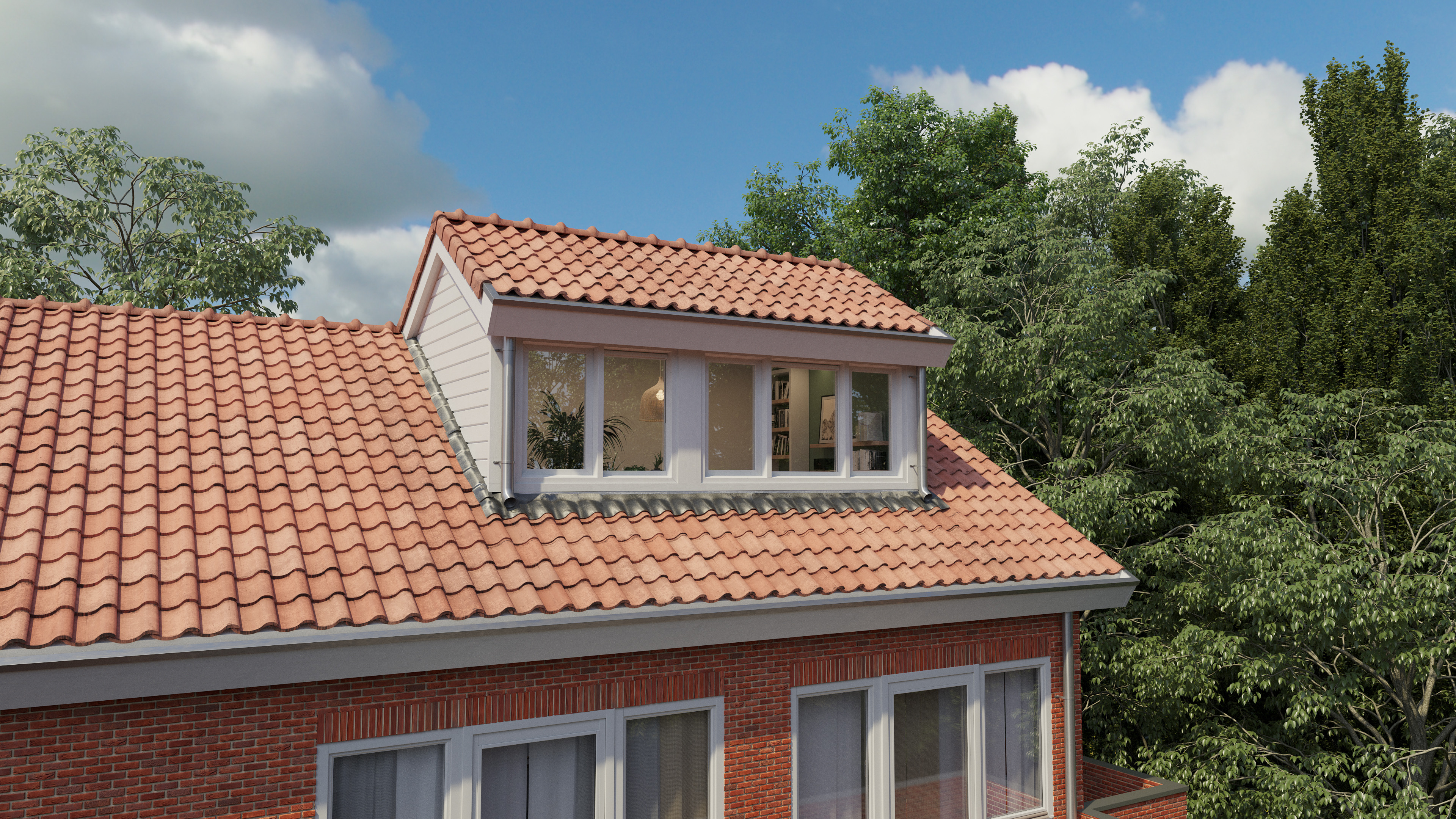 Bij een dakkapel met schuin pannendak, ook wel slepend dak genoemd, is de ruimtewinst gelijk met een dakkapel met plat dak. Echter lijkt een dakkapel met slepend dak volledig geïntegreerd in het dakvlak van jouw woning!