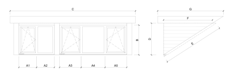 Tot slot meet je het dak van de dakkapel. Meet de lengte van het dak van voor naar achter, dit is de maat C. Meet daarna de breedte van het dak van links naar rechts, aangeduid met G.