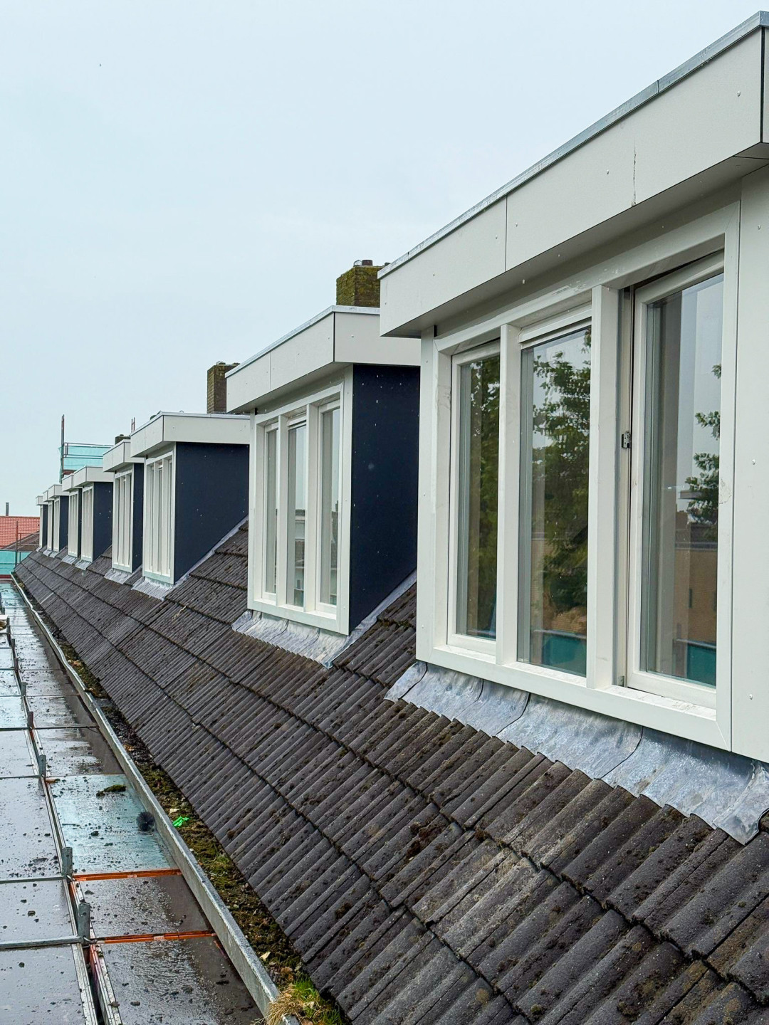 Op de woningen zitten verouderde polyester dakkapellen aan zowel de voor- als achterzijde. De dakkapellen op de achterzijde zijn vervangen door nieuwe dakkapellen die voldoen aan de eisen van deze tijd. De dakkapel is aan de binnenzijde afgetimmerd met gipsplaten en afgewerkt met stroken mdf en/of multiplex. Ook zijn er vensterbanken aangebracht.