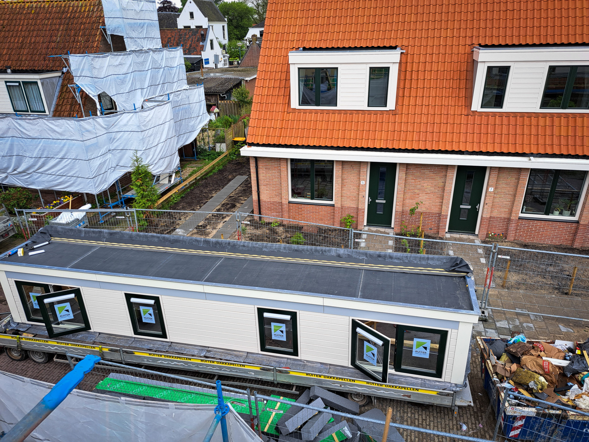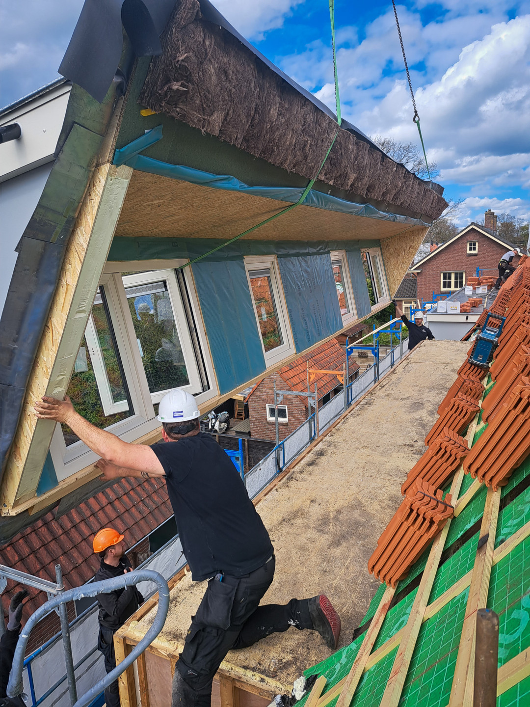 De buitenschil en kozijnen zijn verwijderd en voorzien van een duurzaam en geïsoleerde prefab buiten bekleding: onze overzet dakkapel, inclusief nieuw kozijn met toebehoren.